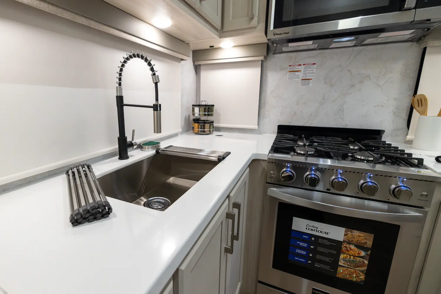 • Upgraded Residential Style Hardware w/ Soft Close Doors & Drawers