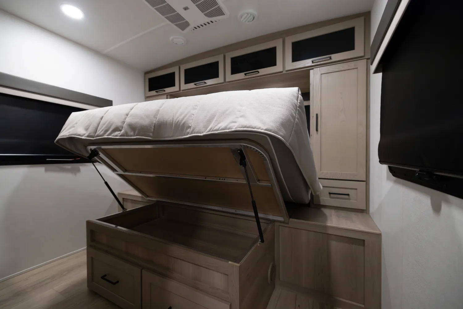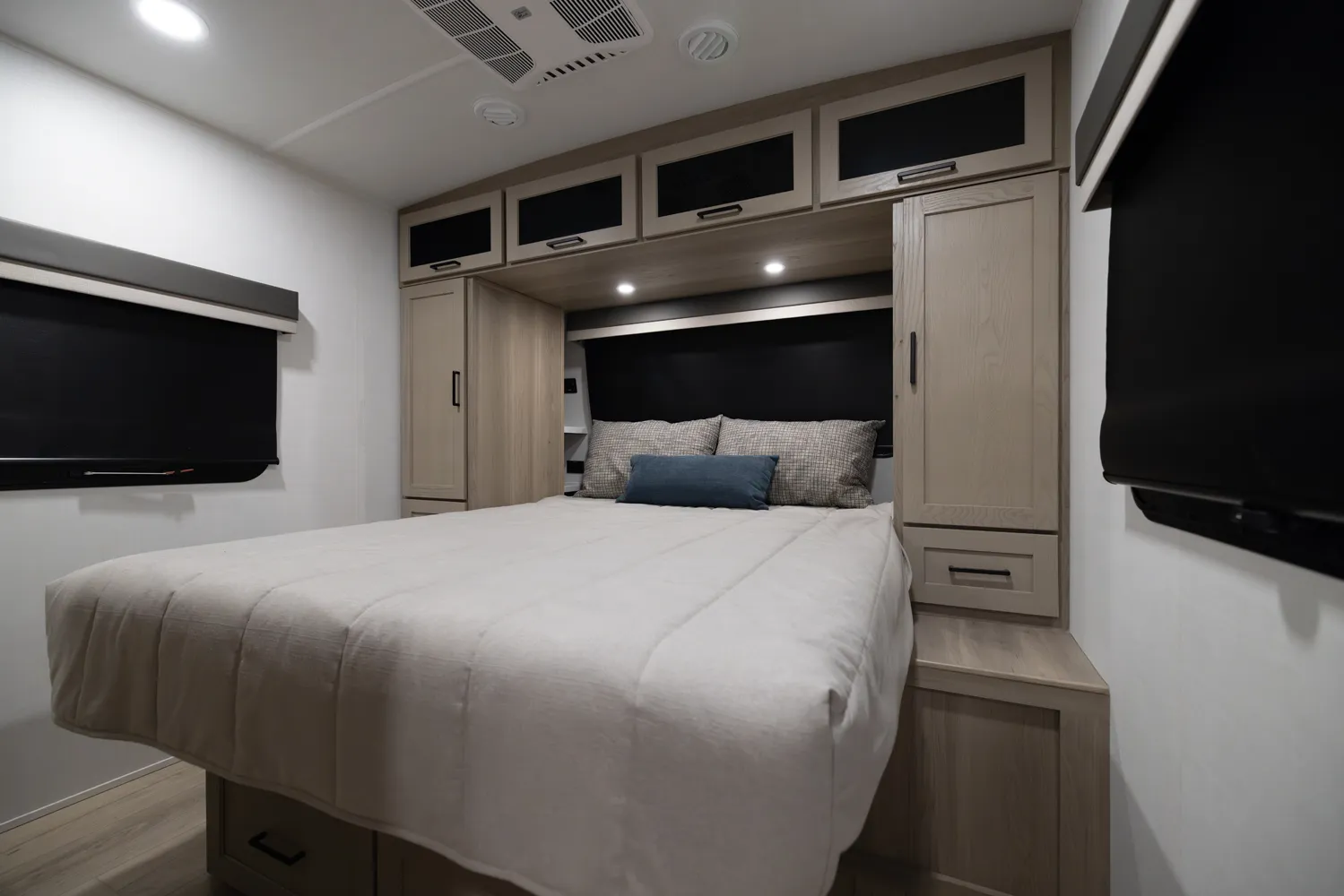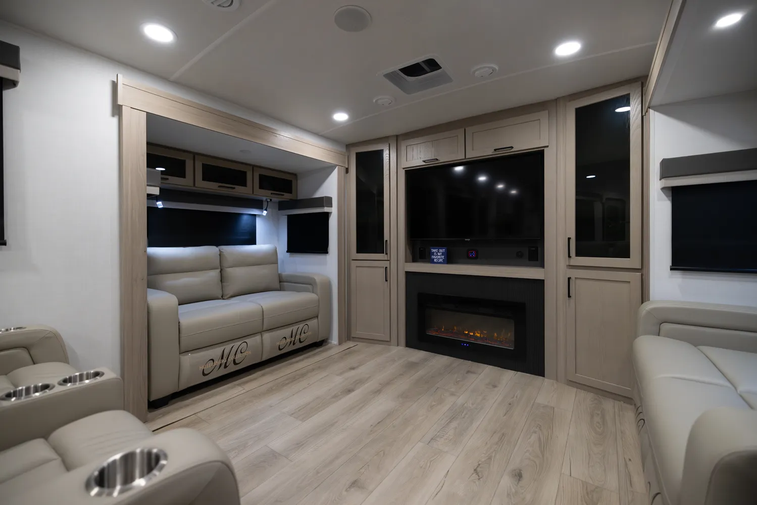 • Platinum Package: Auto Leveling, Frameless Windows, 1800W Inverter, MORryde Strut Assist Entry Step, Dual 30 LP Tanks