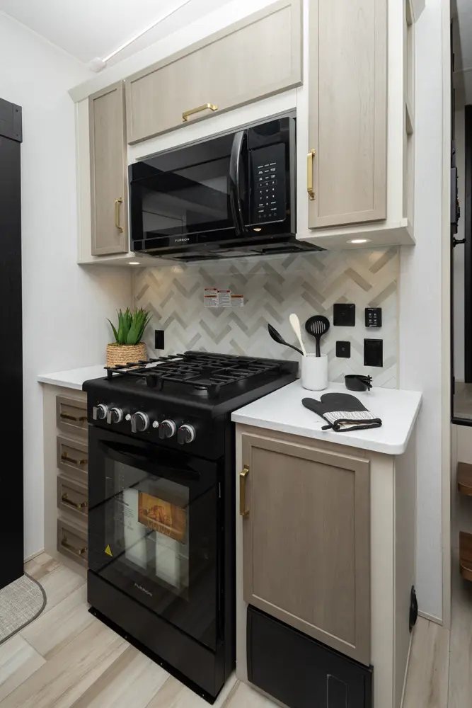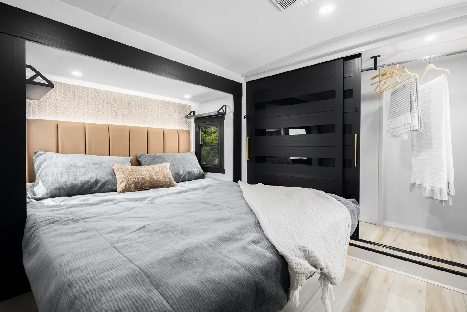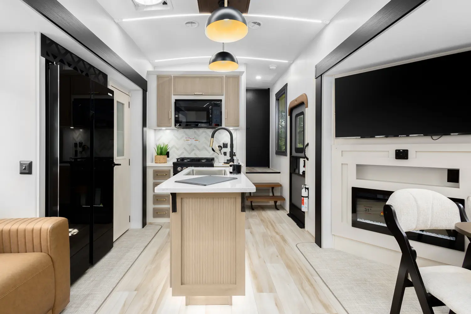 6.5' ceilings in the upper deck (bathroom & bedroom), stackable washer/dryer prep in the expansive wardrobe, and a deep king bed slide-out are just a few of the features that make the 286RL an unbelievable value. A kitchen island and ample countertop space are located next to the entertainment/living area. Check out this award-winning floorplan for yourself!