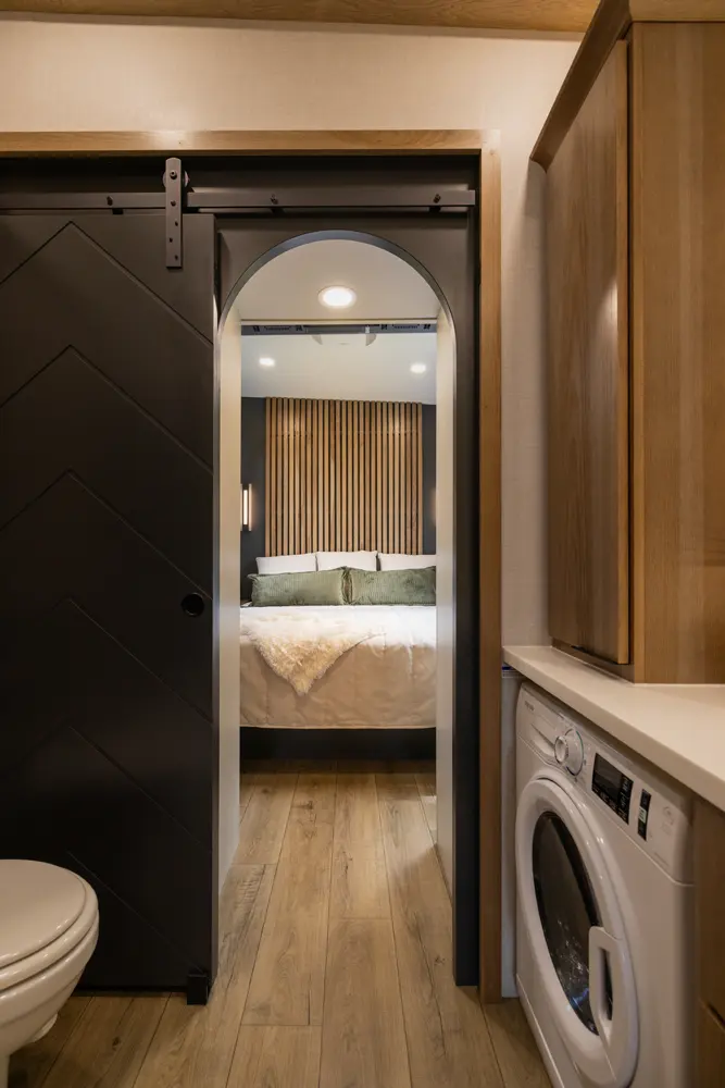 The Sequoia sets a new standard with its innovative slide-less floorplan, boosting efficiency and reducing maintenance. Inside, the galley kitchen features premium appliances, solid-surface countertops, and hardwood cabinetry. A spa-inspired bath, dual-closet bedroom, and expansive storage highlight its modern and functional design, delivering luxury and innovation in every detail.