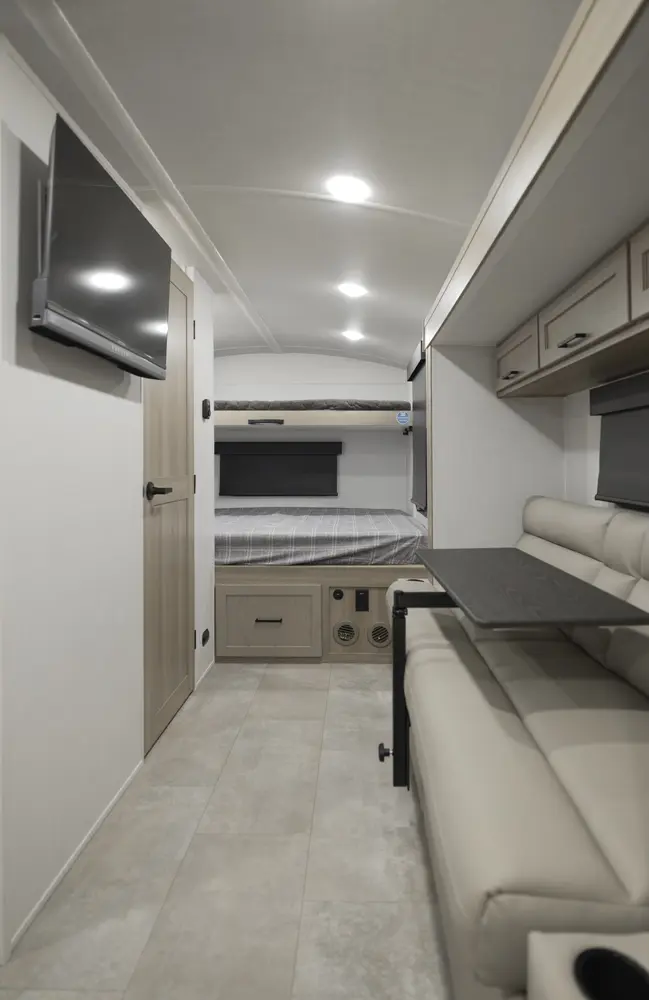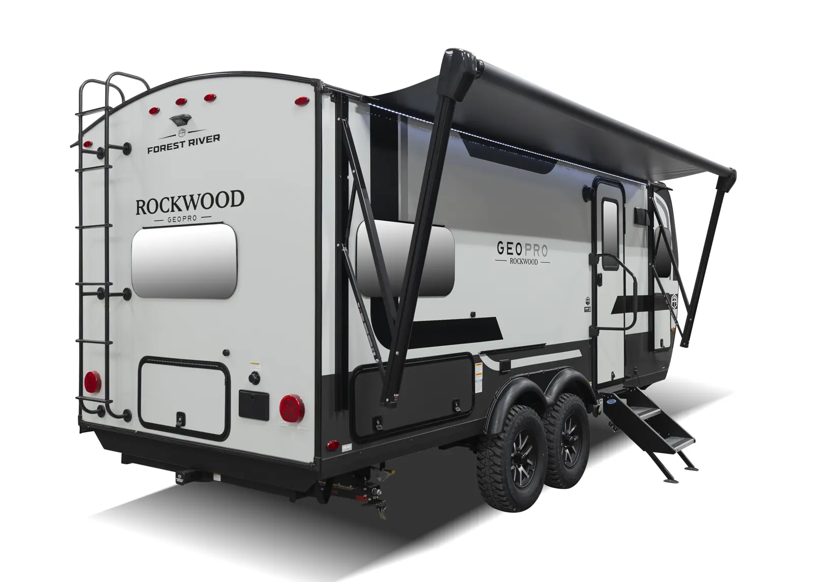 The 20FK is a compact trailer packed with big features! Our first dual axle Geo Pro gives you improved stability and towing confidence in a lightweight design. The front kitchen offers excellent counter space while the rear sleeping area and slide-out create a comfortable, open living space. At just over 21 feet, and around 4,200 lbs., the 20FK delivers easy towing with the durability and off grid features that Rockwood is known for.