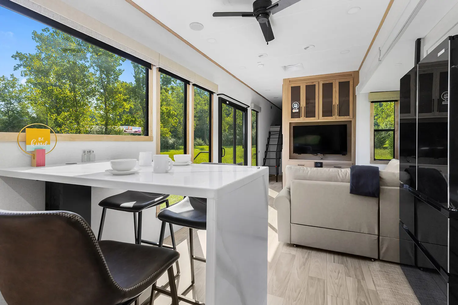 • Large, tinted windows with 80/20 UV prohibitor